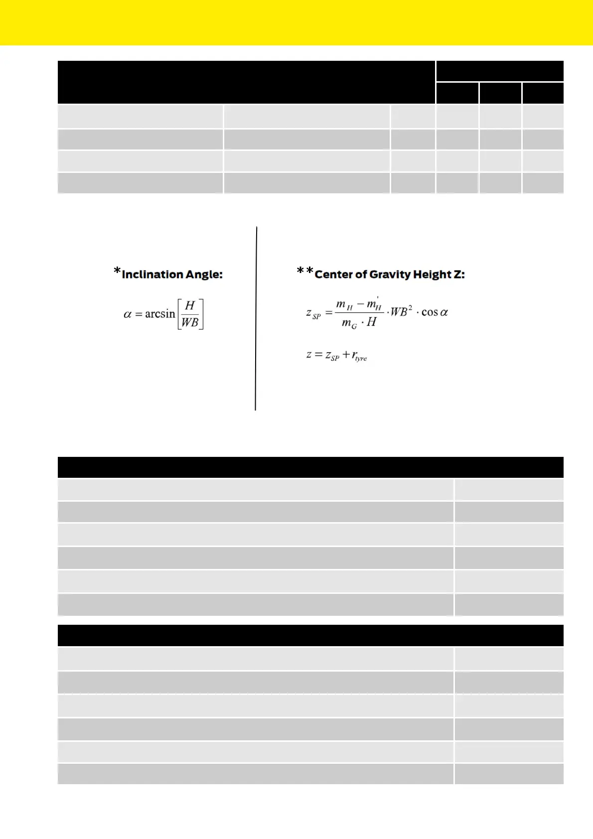 Centre of Gravity (CoG) height (from the vehicle axle centre line) Z