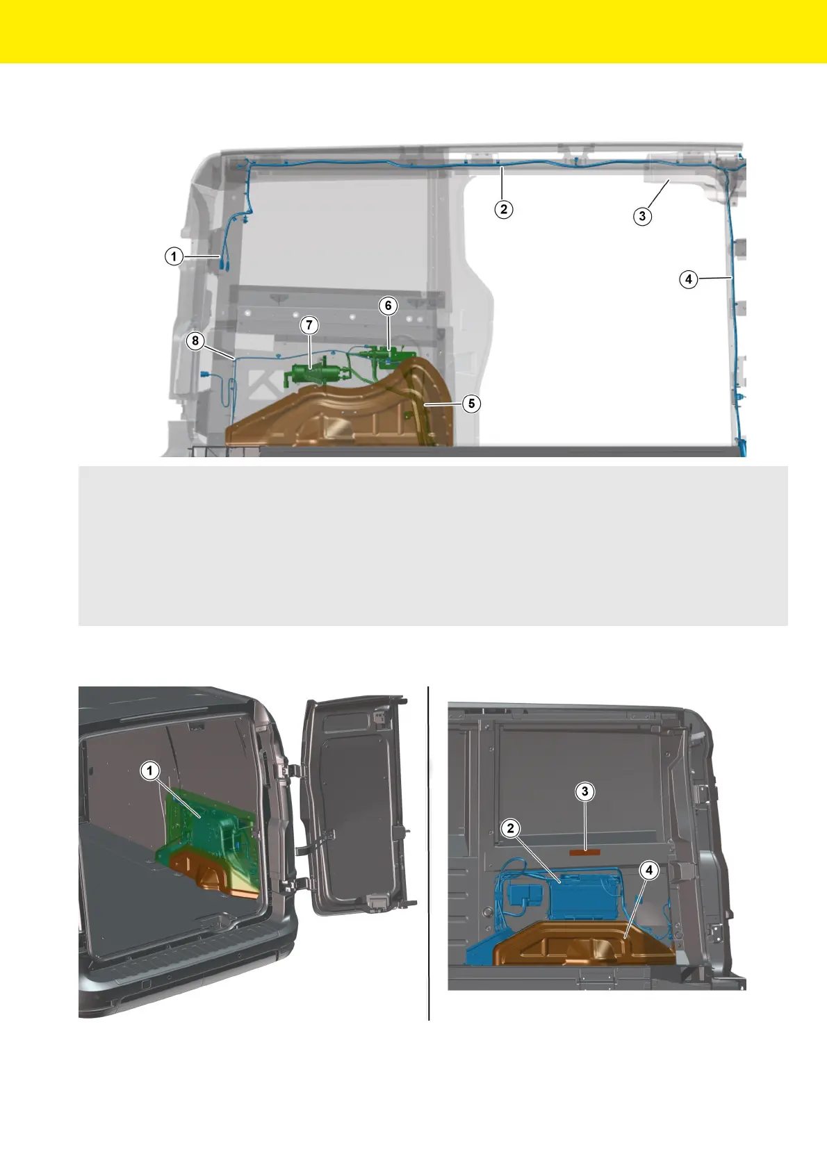4 12V wiring harness attached to the B-pillar, in front of the load space bulkhead.
