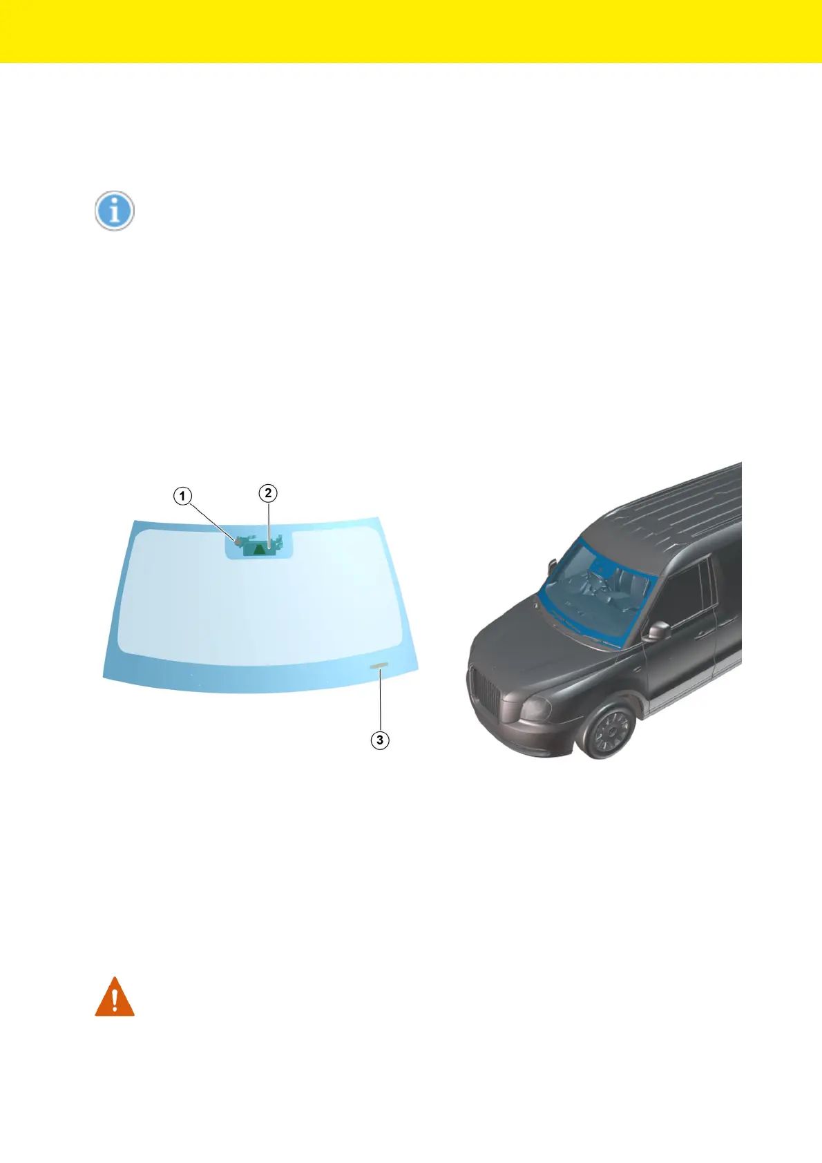 Do not obstruct the rain and light sensor 1, camera/ radar unit 2 and the Vehicle Identification