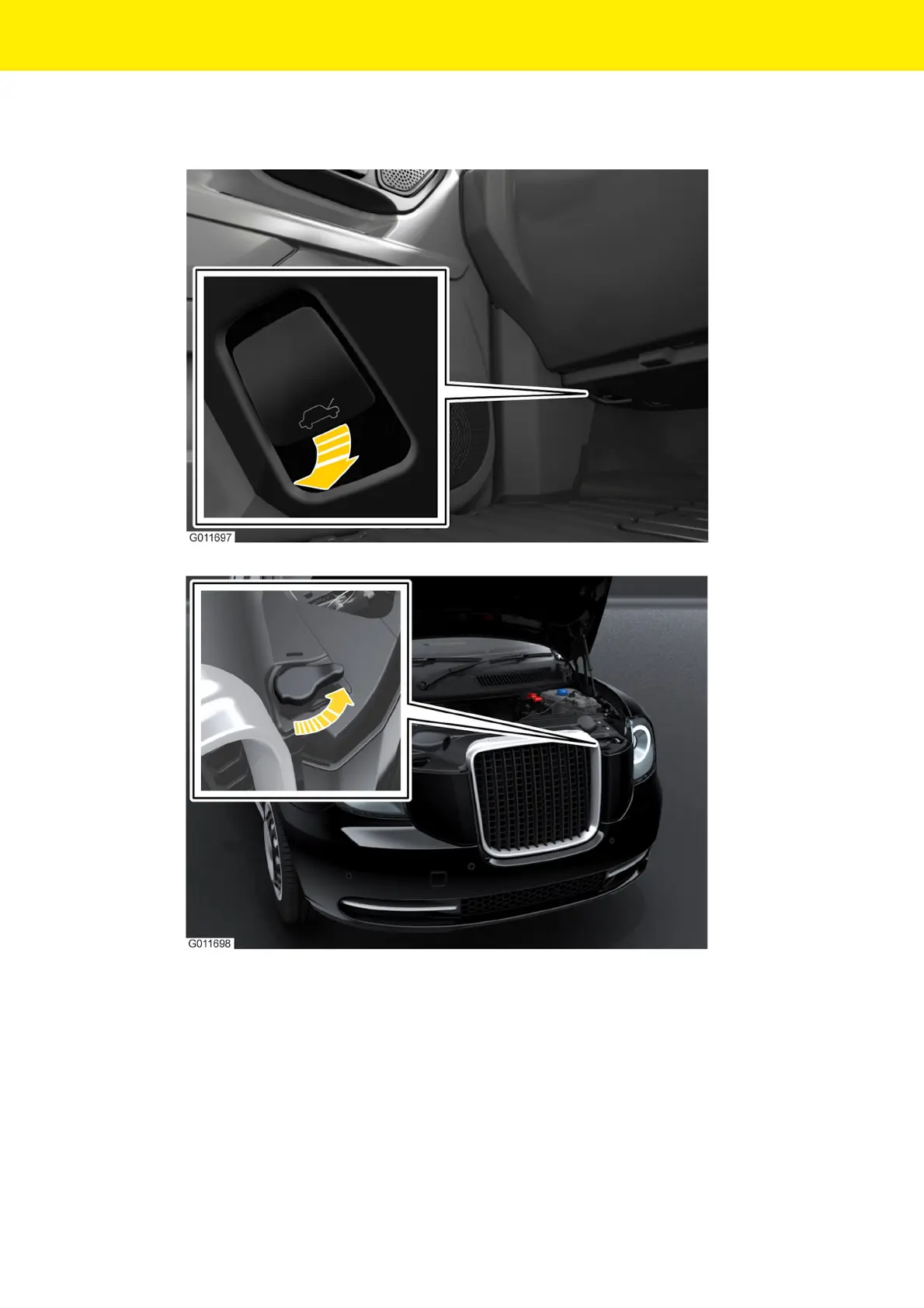 2. To release the bonnet safety catch push the lever rearward and lift the bonnet.