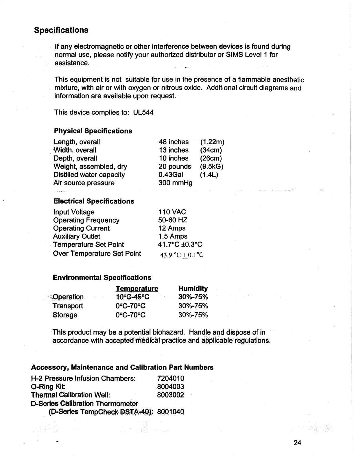 level 1 System 1000 - Specifications; Physical Specifications; Electrical Specifications; Environmental Specifications