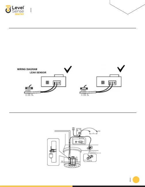 minimum pool of water of 1/8” in depth before activating. The wires do not have polarity and cannot