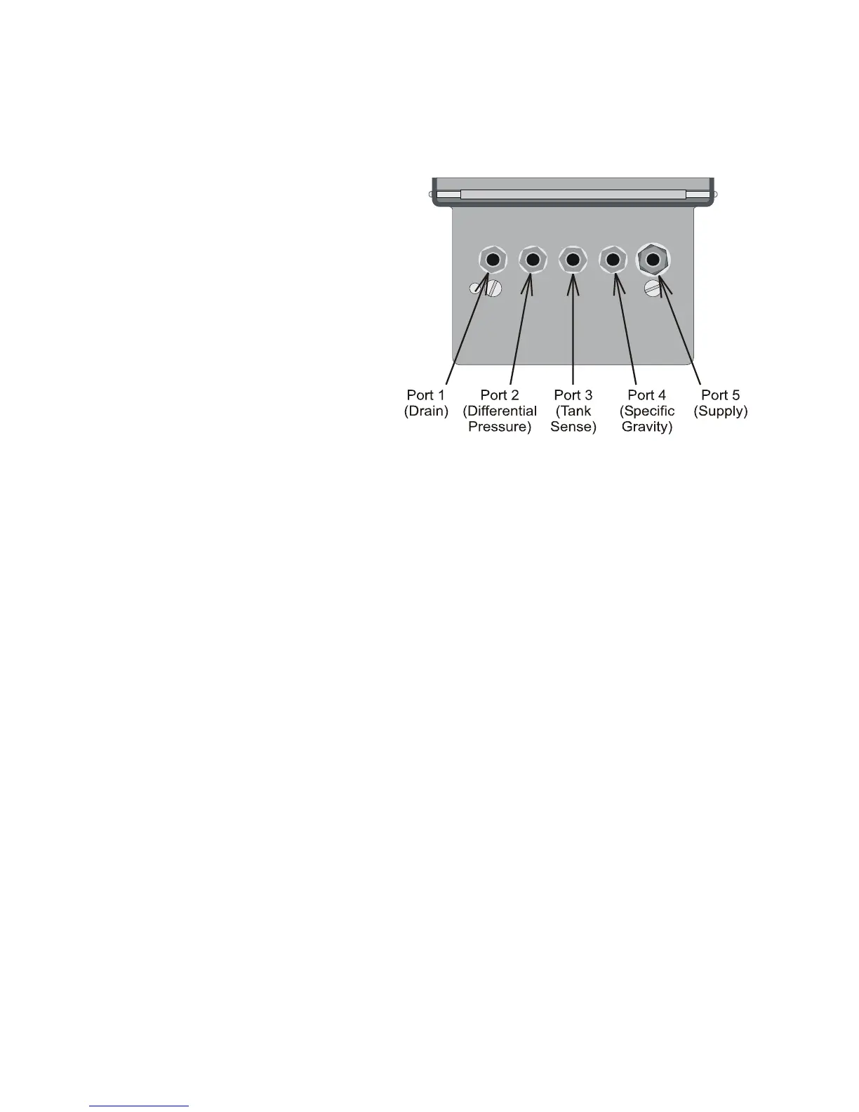 Port 1 DRAIN is used at regular intervals by the LevelCom 100 to purge its manifold of any
