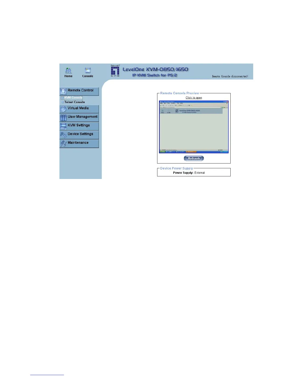 LevelOne 1650 - 6 Menu Options; Remote Control; KVM Console