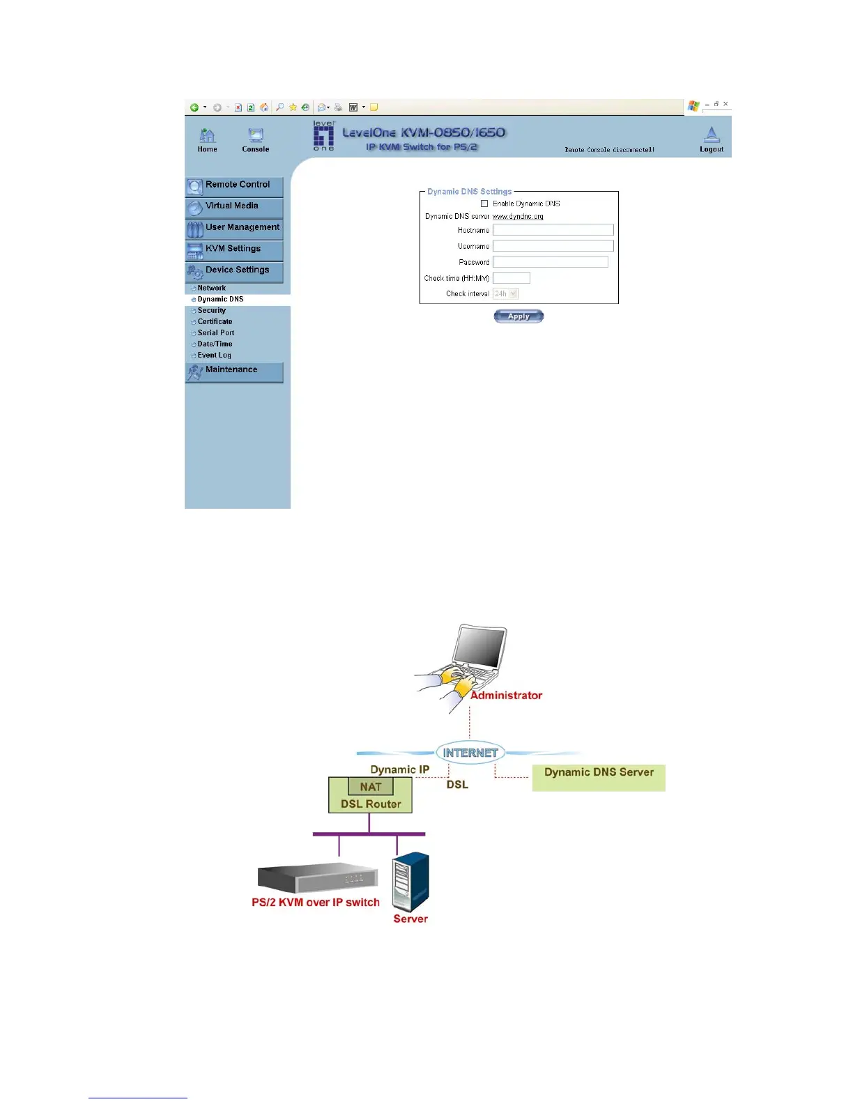 the provider, the KVM-0850/1650 connects to a special dynamic DNS server in regular