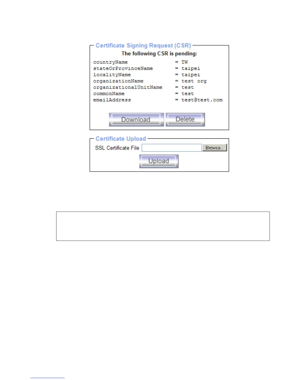 • Upload the certificate to the KVM-0850/1650 using the “Upload” button as shown in Figure