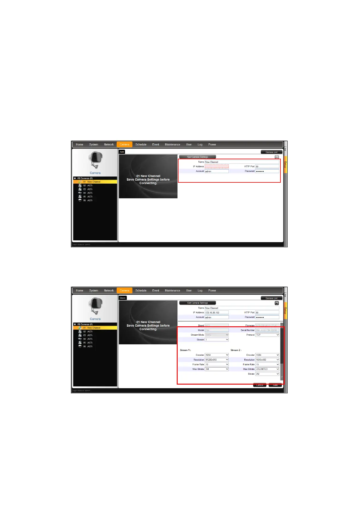 6. Enter the IP Address, HTTP Port, User Name and Password of the camera you want to