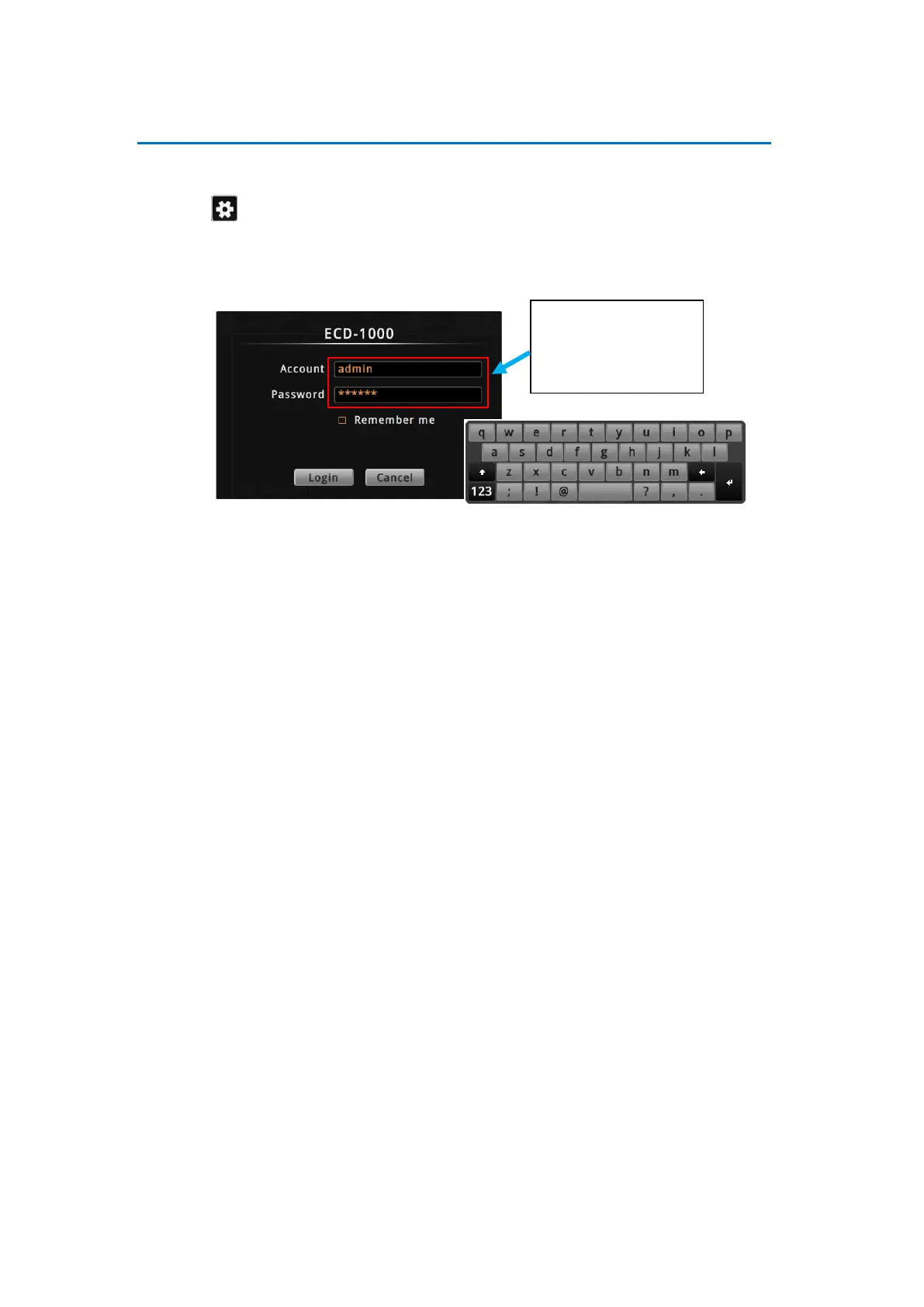 2. When prompted to login, enter the default Account and Password using the on-screen