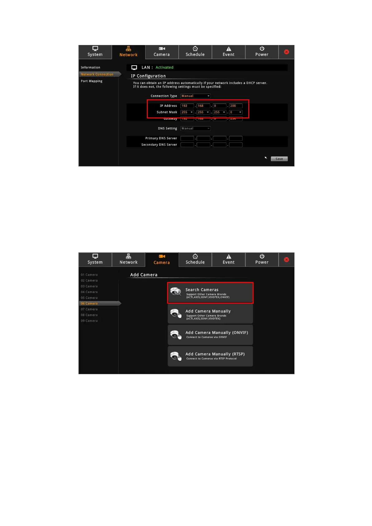 NOTE: To add cameras by IP address or connect to camera via RTSP protocol, see