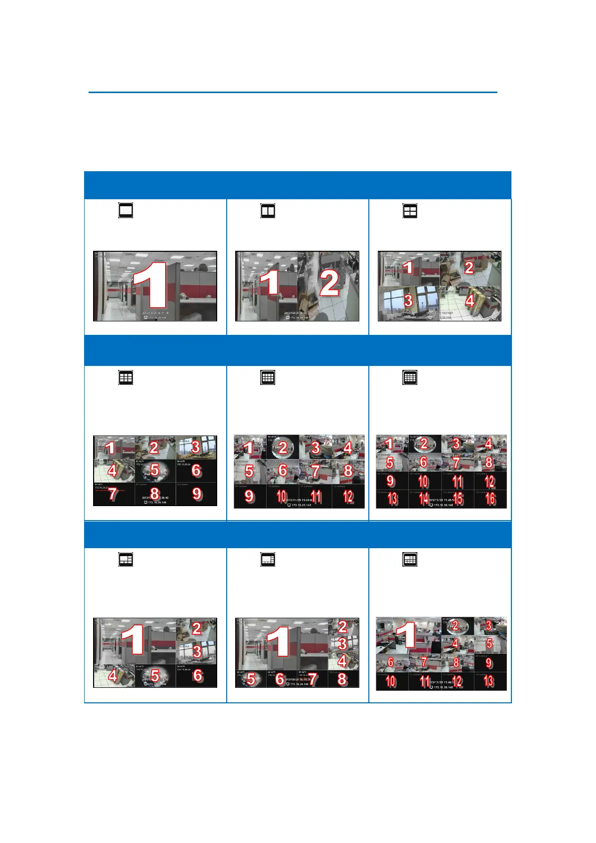 By default, the local Live View is displayed with a 9-channel layout. The layout can be