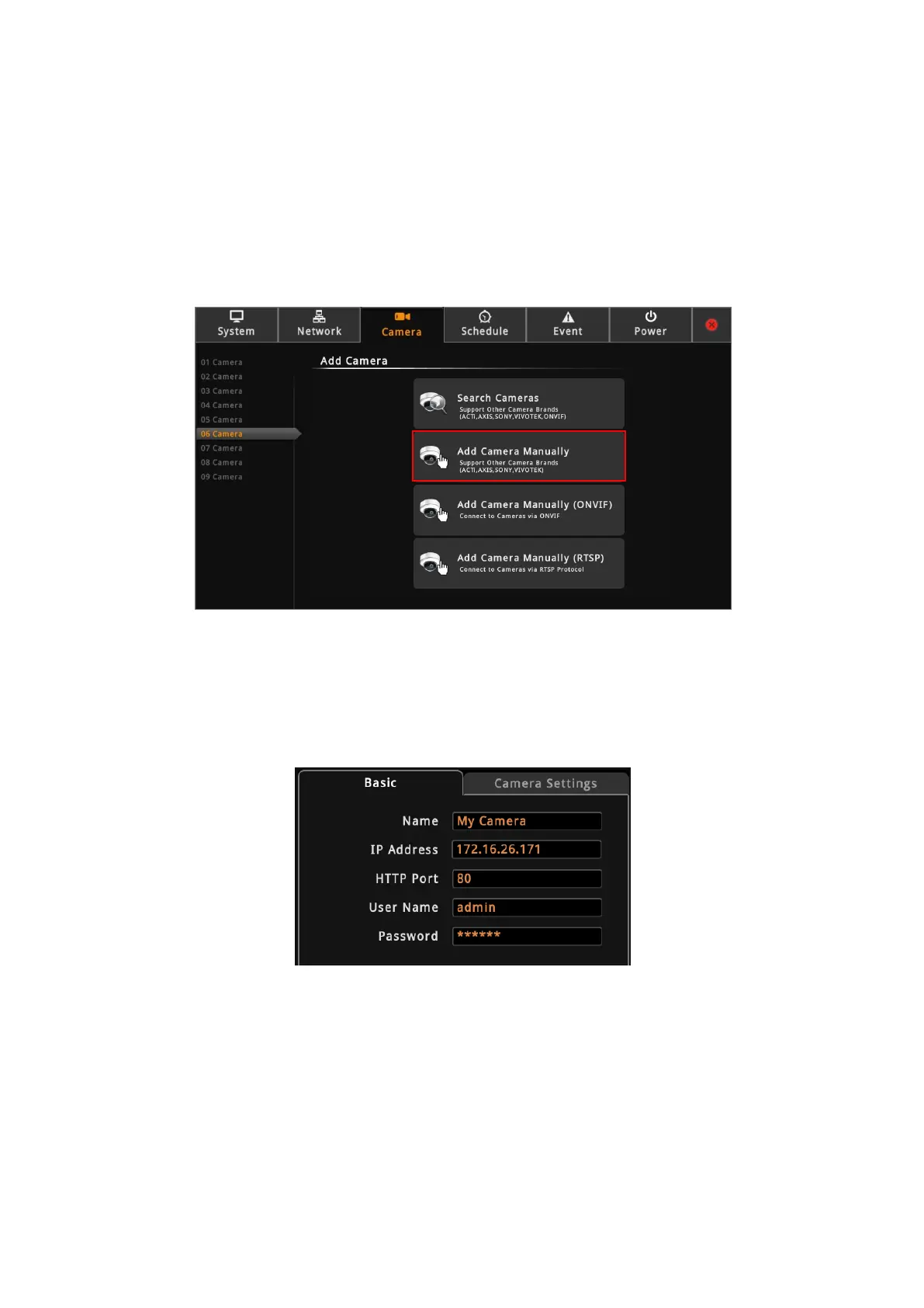 camera manually function. You need to know the IP address, HTTP port, User Name and