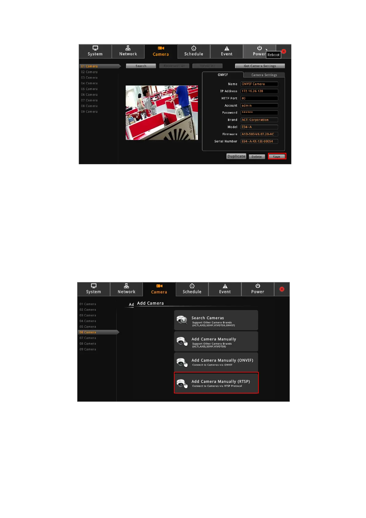 Camera Manually (RTSP) function. This feature is useful when adding third party cameras