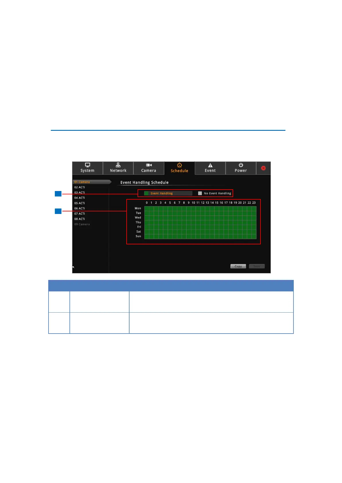 Shows green cell if event trigger is enabled and gray cell if