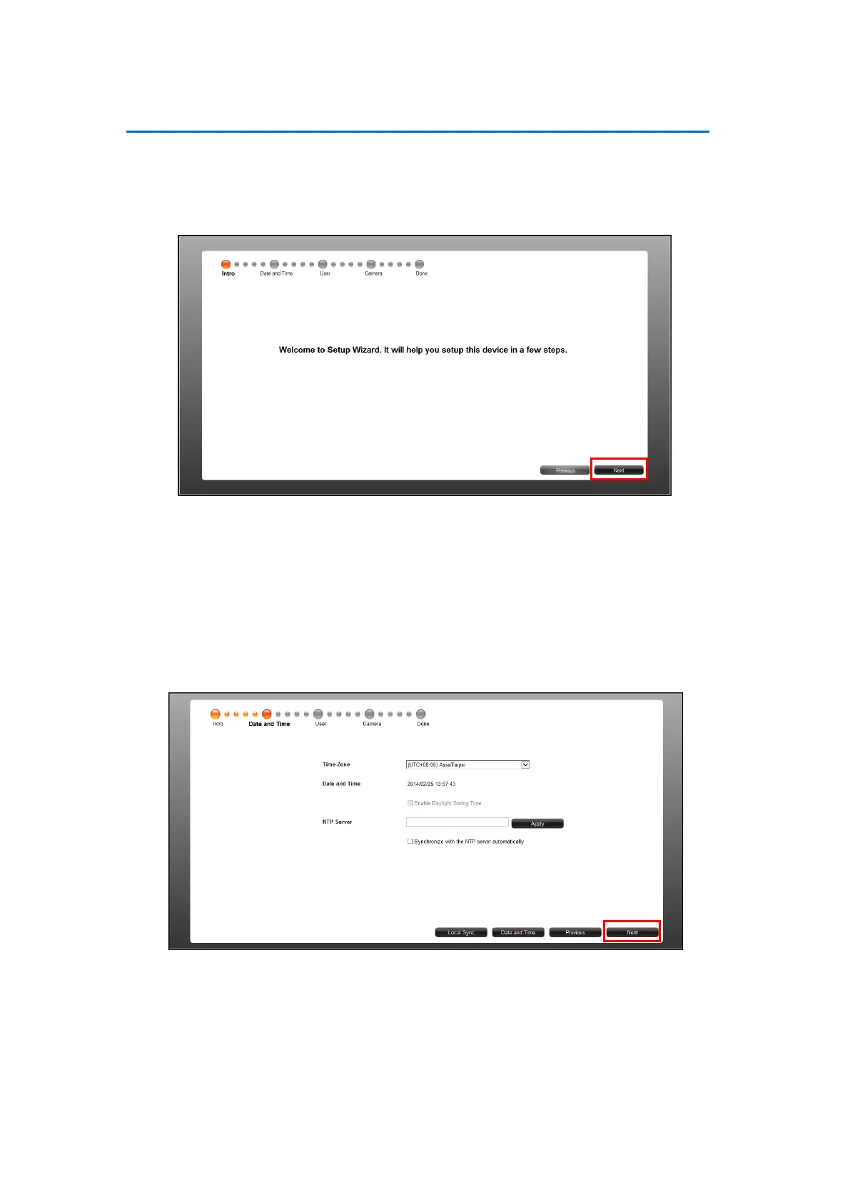 When accessing DSS-1000 for the first time on a client computer, the Setup Wizard appears