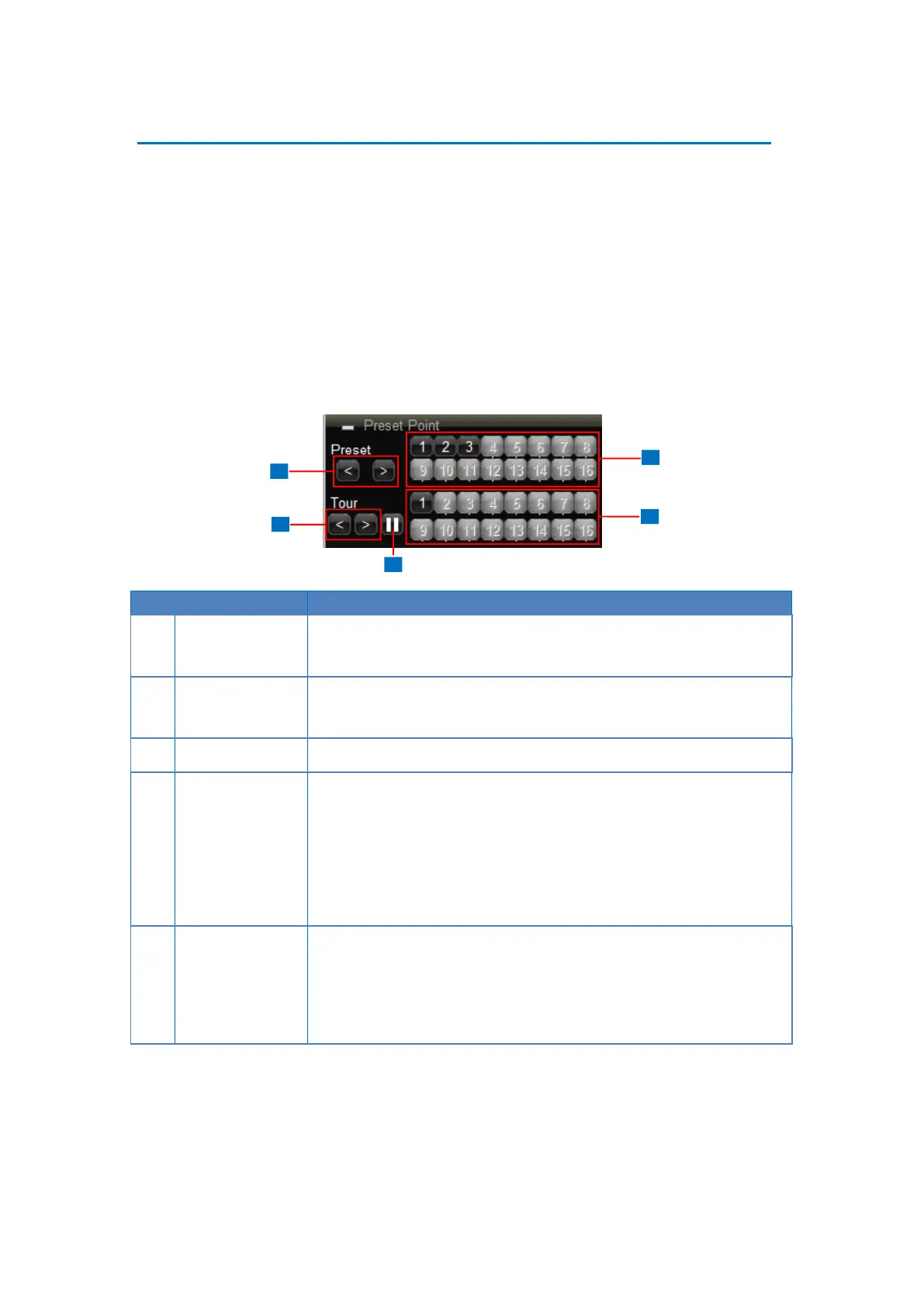 Click < to view preset point 1 ~ 16 buttons or > to view preset point