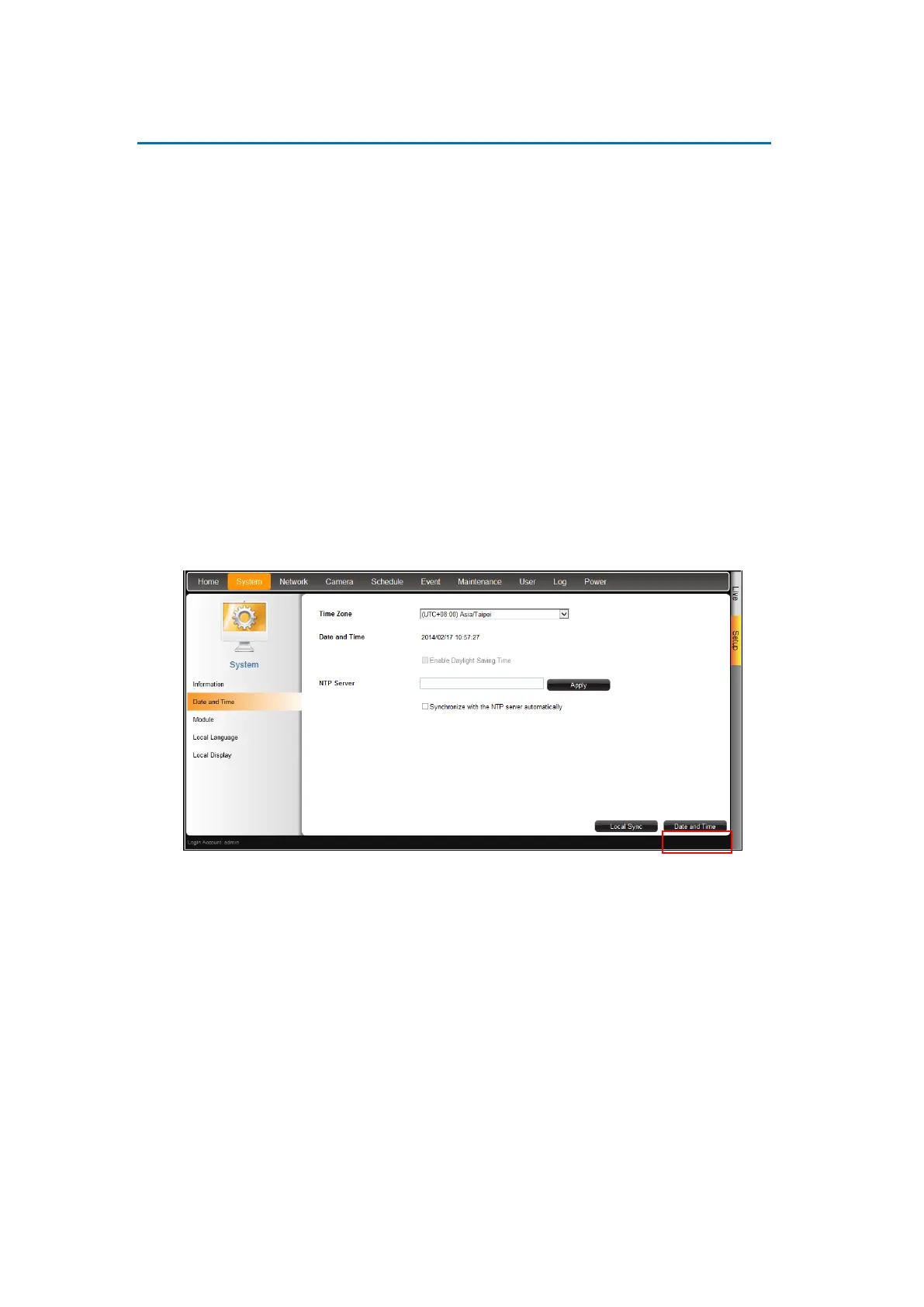 2. On Time Zone, select the desired time zone. The system date and time automatically