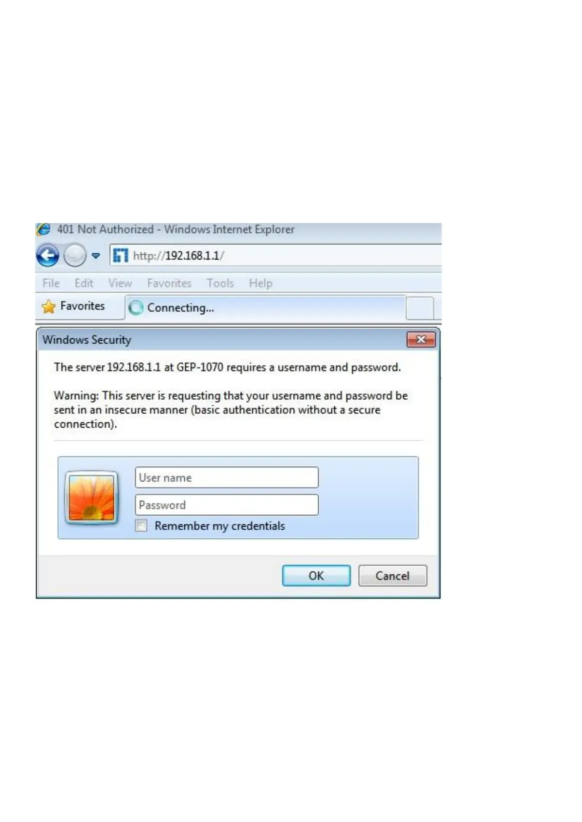 3. Iniciar sesión en el equipo: abra un explorador y escriba 192.168.1.1 en la barra de direcciones y,
