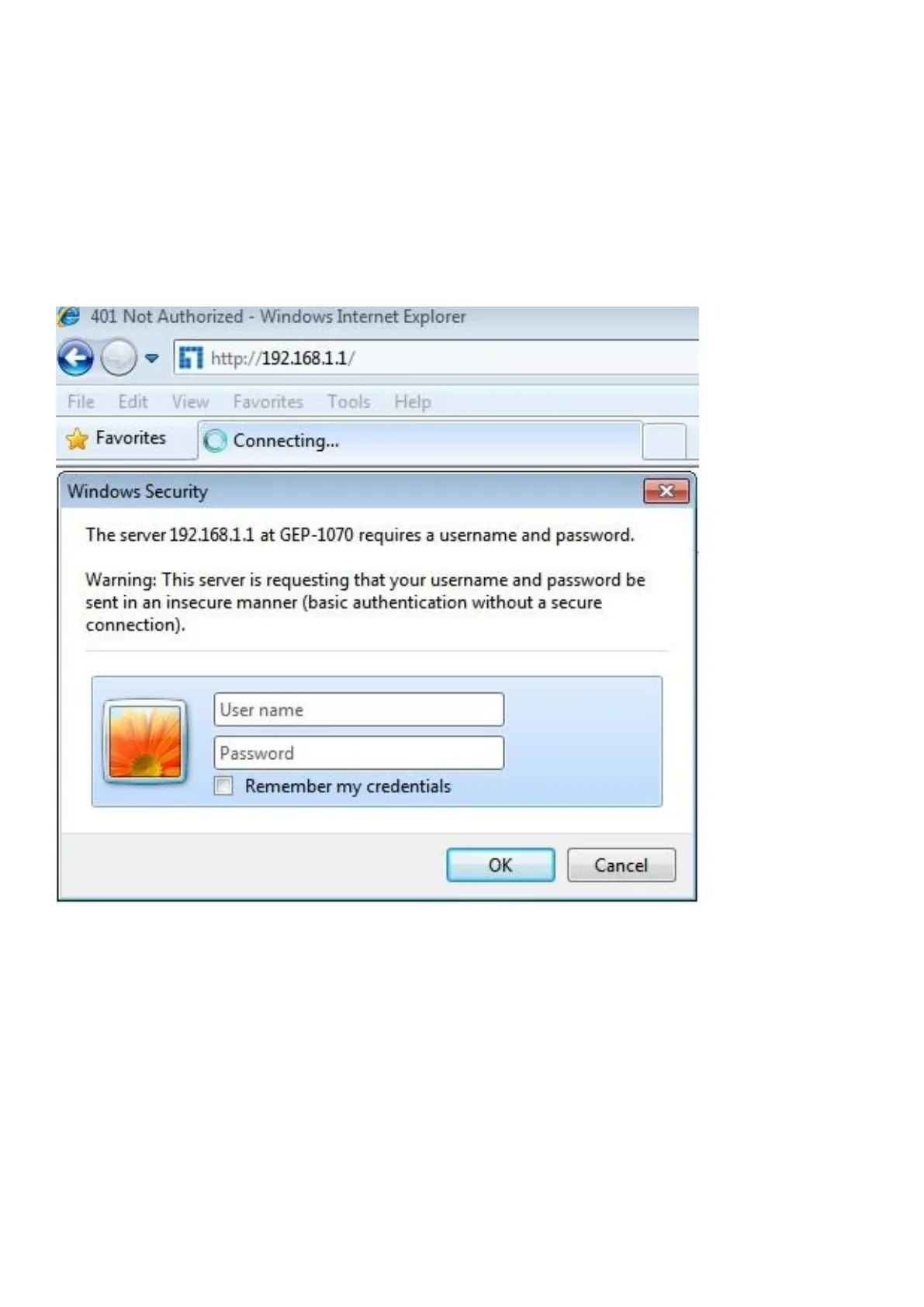 3. Accesso al dispositivo: Aprire un browser ed inserire 192.168.1.1 nella barra degli indirizzi, quindi