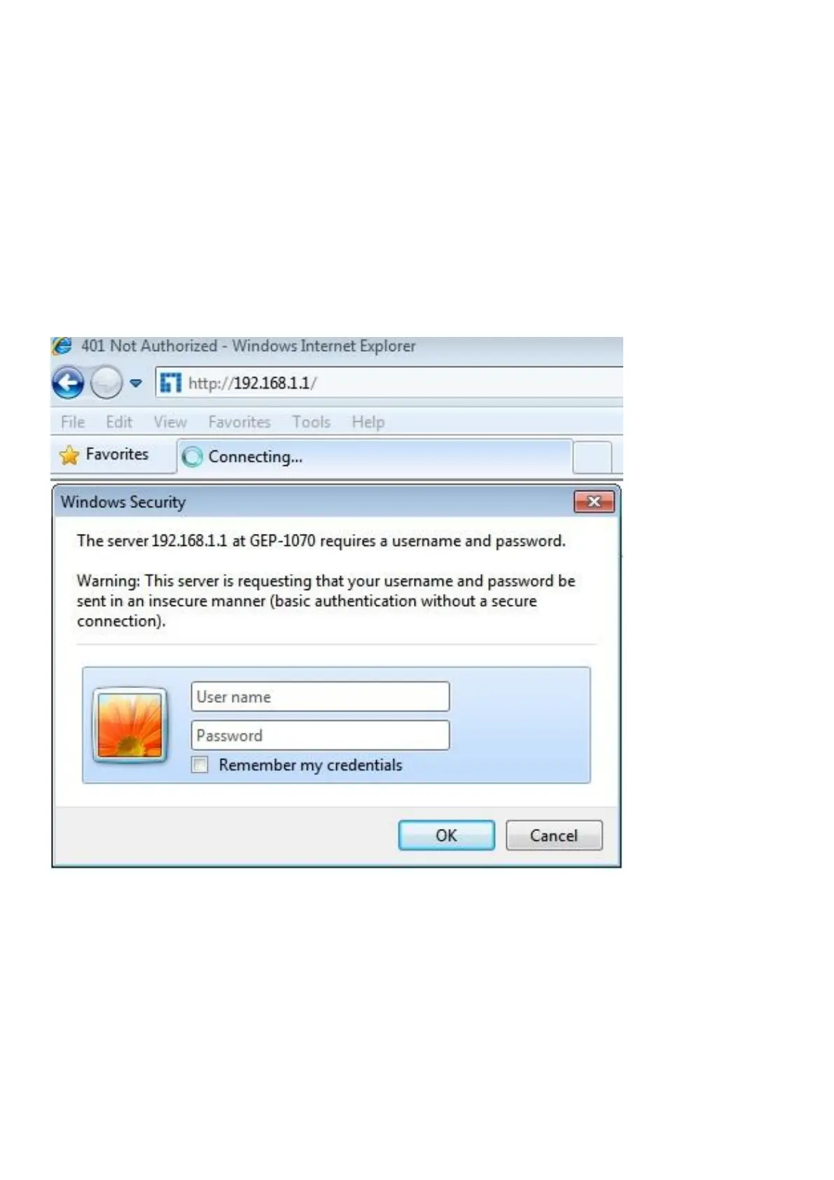 palavra-passe "admin" predefinidos e clique em OK.