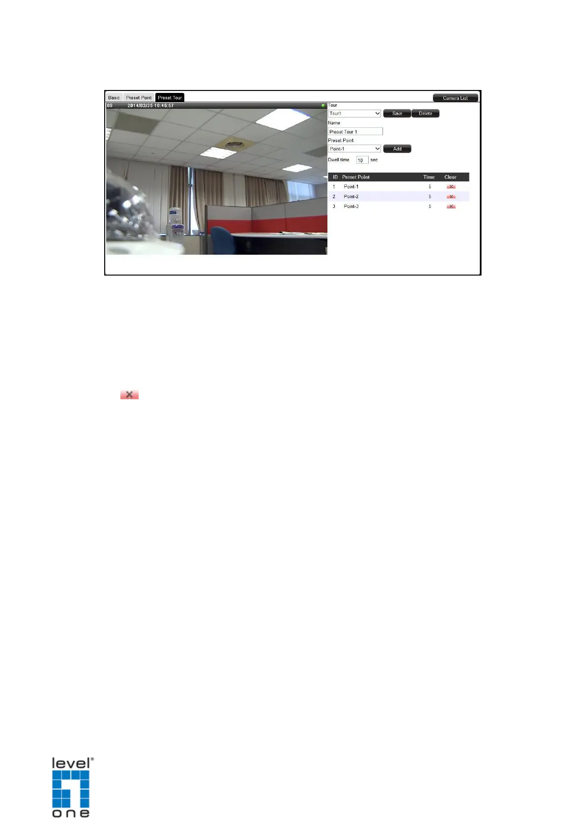 On the Preset Tour page tab of the selected camera, click the corresponding