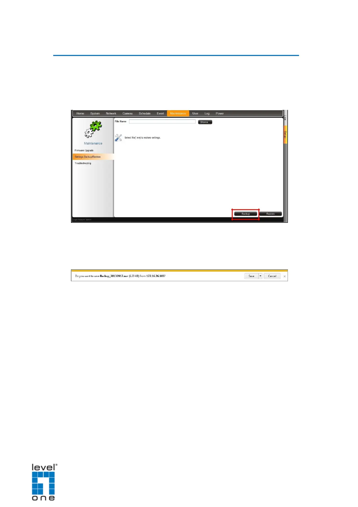 1. On the Setup screen, click Maintenance > Settings Backup/Restore.