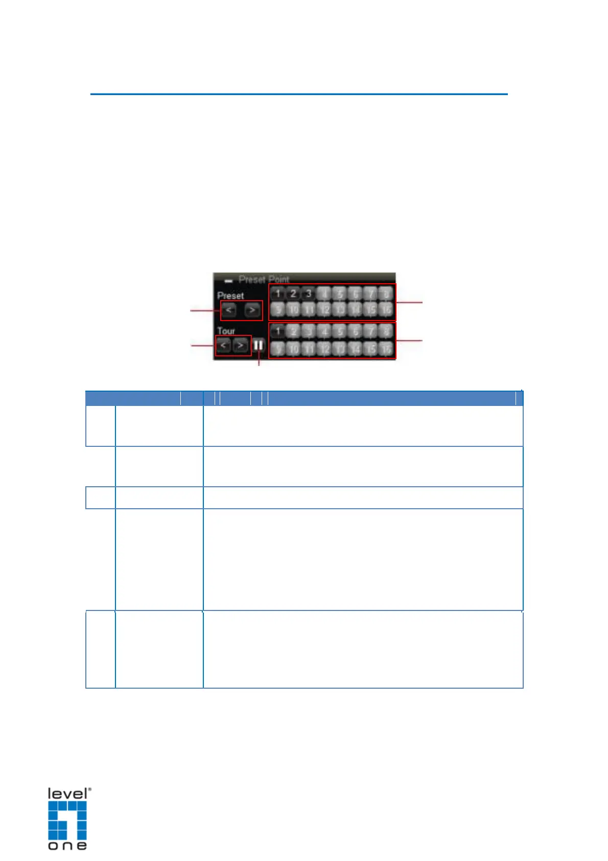 Click < to view preset point 1 ~ 16 buttons or > to view preset point