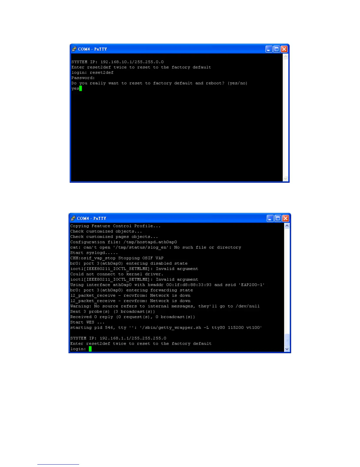 When the login prompt reappears, the device has completed the reset to default process and the LAN IP is