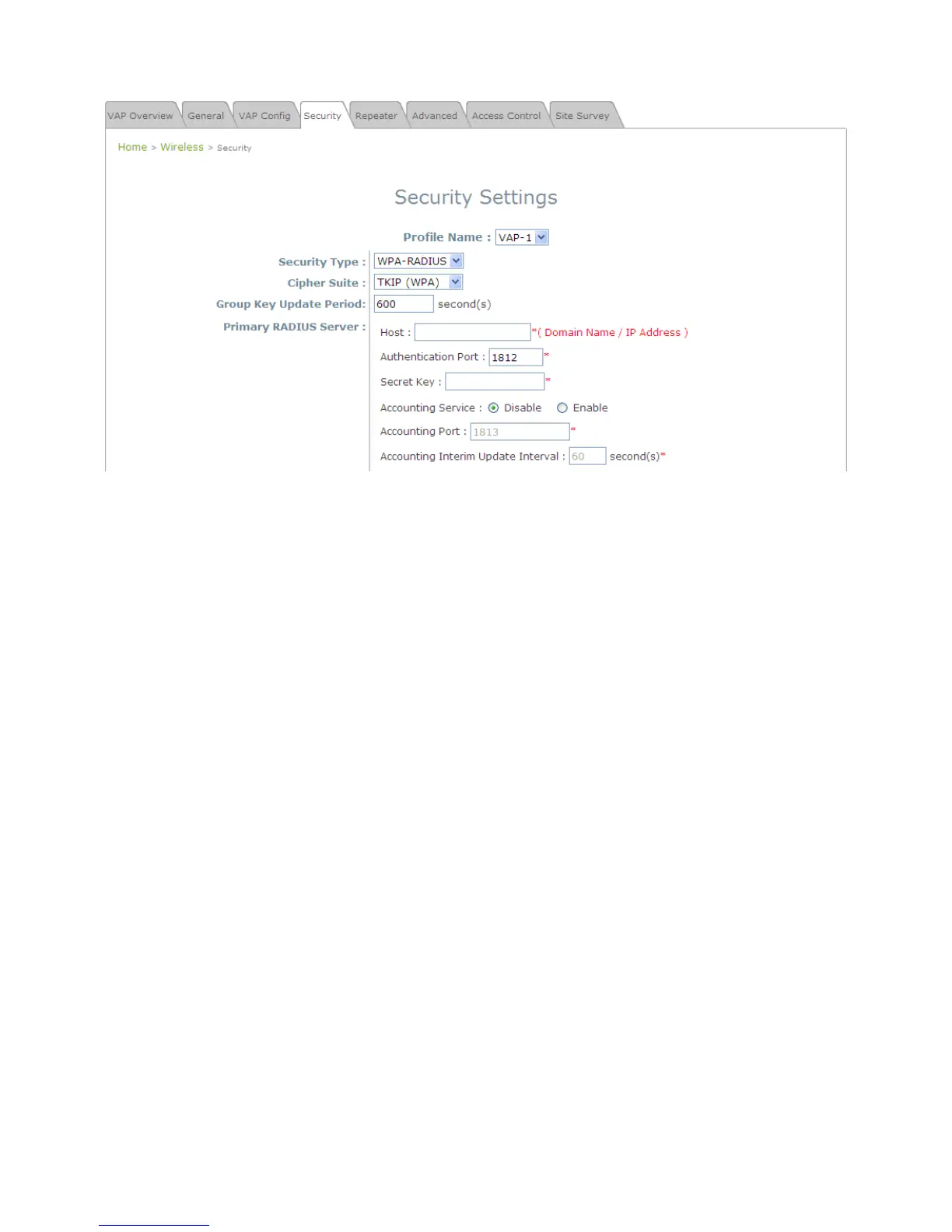 o Secret Key: The secret key for the system to communicate with the RADIUS server.