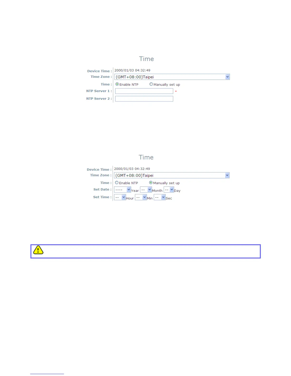 By selecting Manually set up, the administrator can manually set the system date and time.