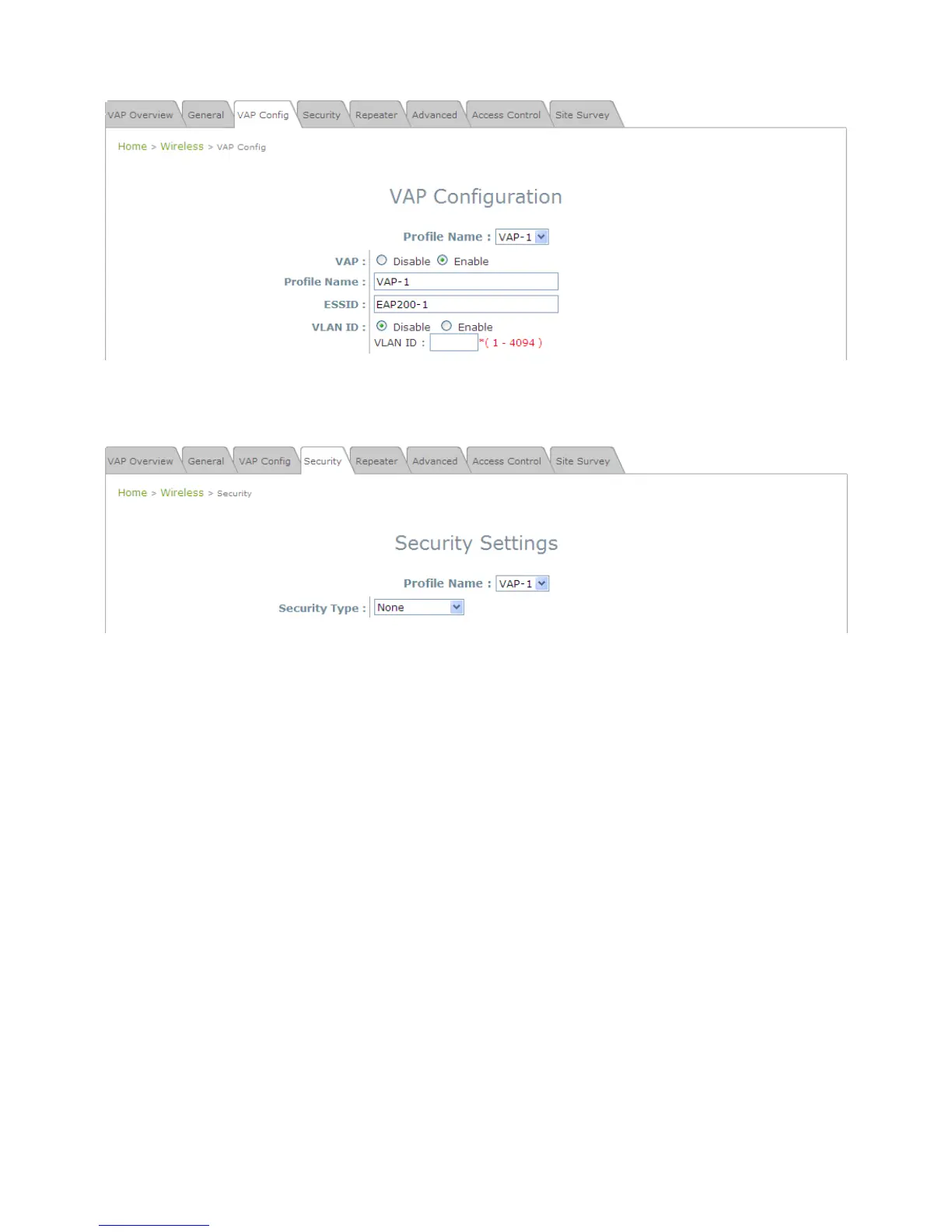 State: The hyperlink showing Enable or Disable connects to the VAP Configuration page.