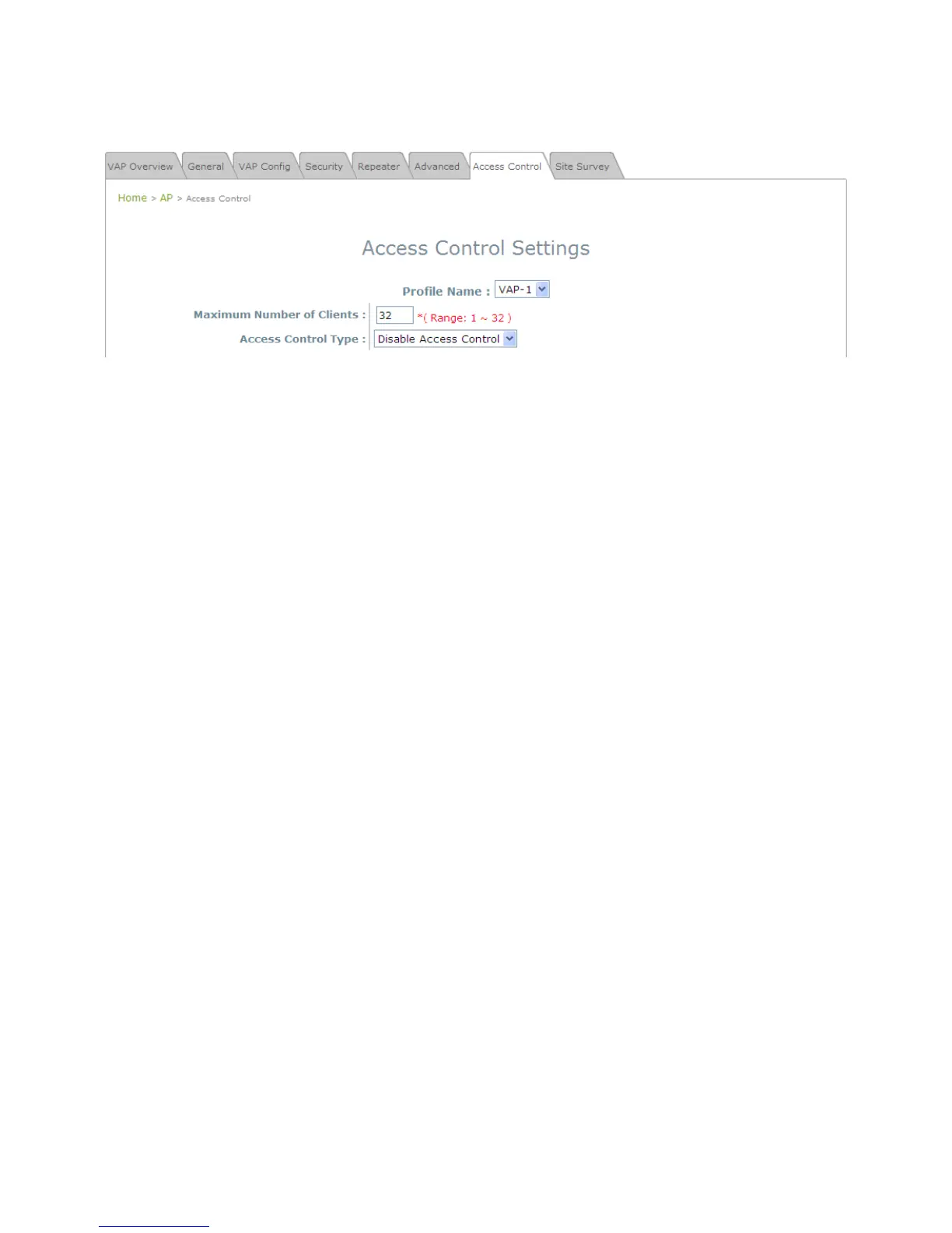 On this page, the network administrator can restrict the total number of clients connected to the EAP-200,