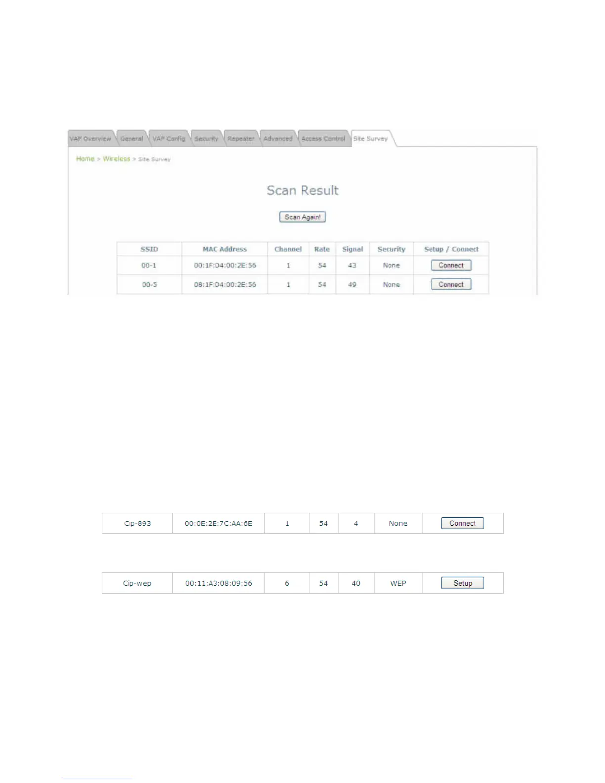 o Connect: Click Connect to associate with the respective AP directly; no further configuration is