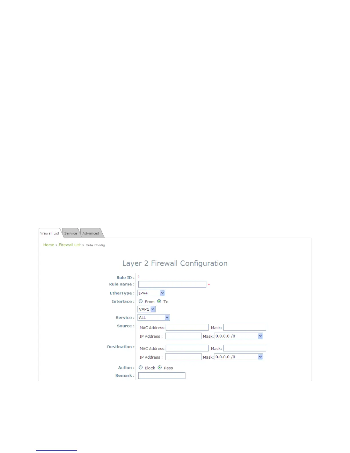 In in Setting column of firewall list will lead to the following page for detail configuration with rule ID for the