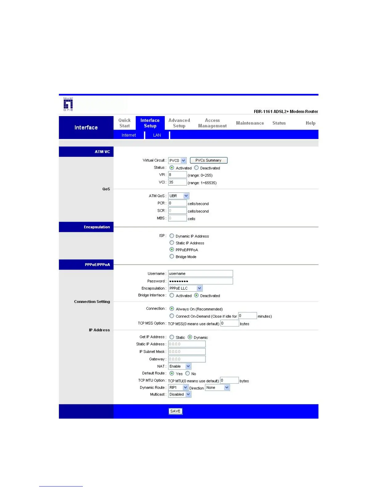 LevelOne FBR-1161 - Interface Setup; 4.2.1. Internet