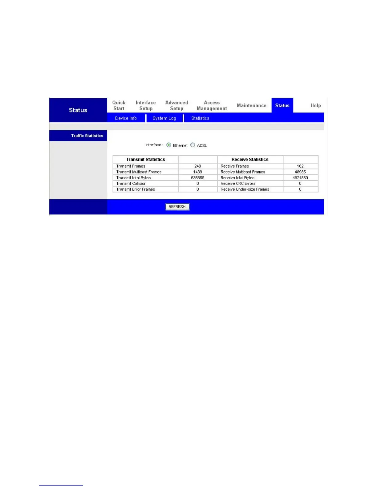 Transmit total Bytes: This field displays the number of bytes transmitted in the last second.