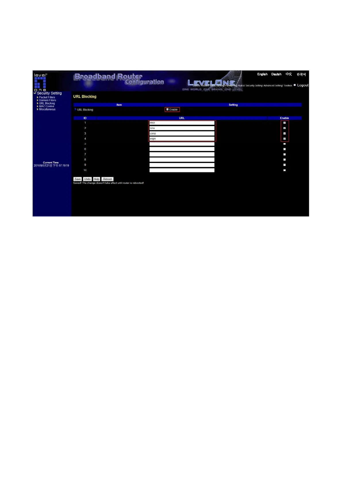 1. URL include “msn” will be blocked, and the action will be record in log-file.