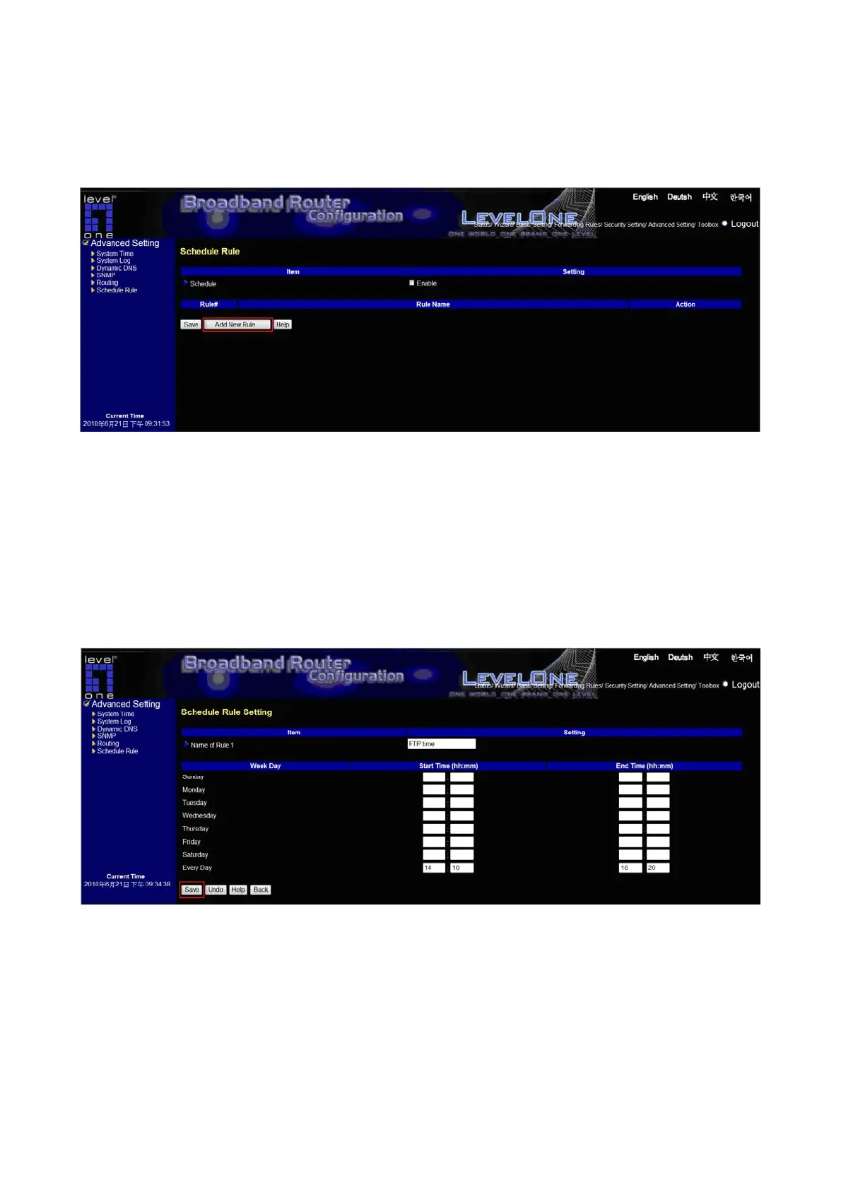 following example configure “ftp time” as everyday 14:10 to 16:20