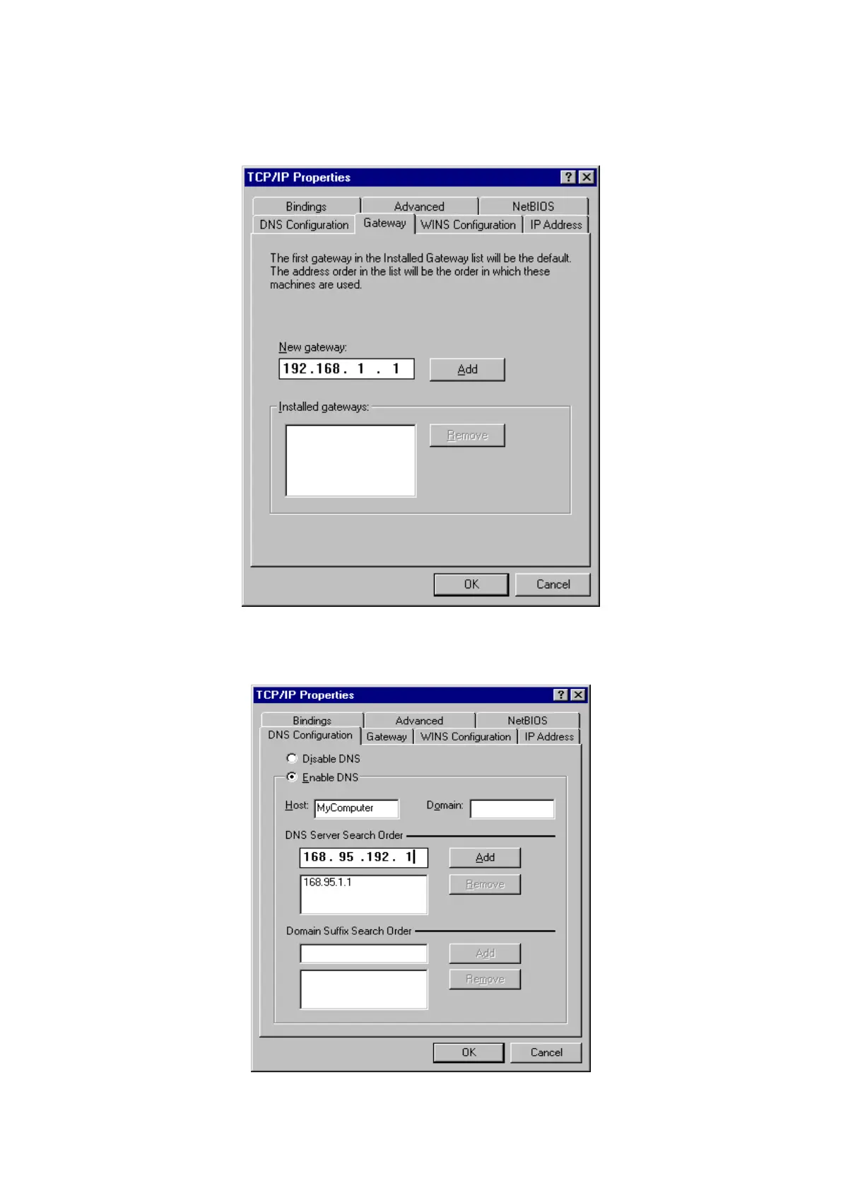 In the Gateway tab, add the IP address of this product (default IP is 192.168.1.1) in the New