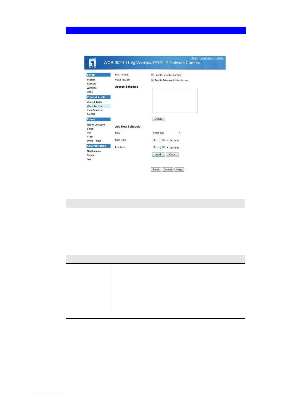 This screen is displayed when the Video Access option on the Video & Audio menu is