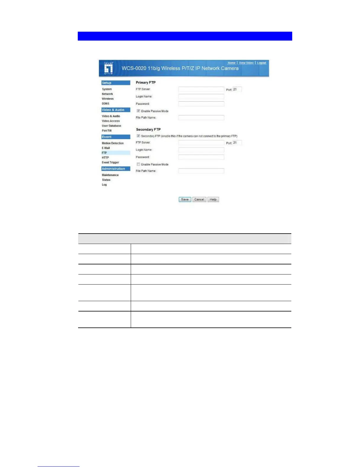 This screen is displayed when the FTP option on the Event menu is clicked.
