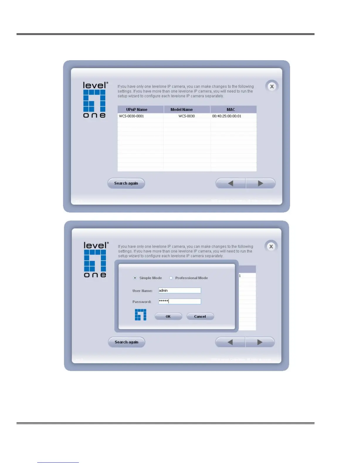 3. Select the Network Camera from the survey list and enter the user name and password.