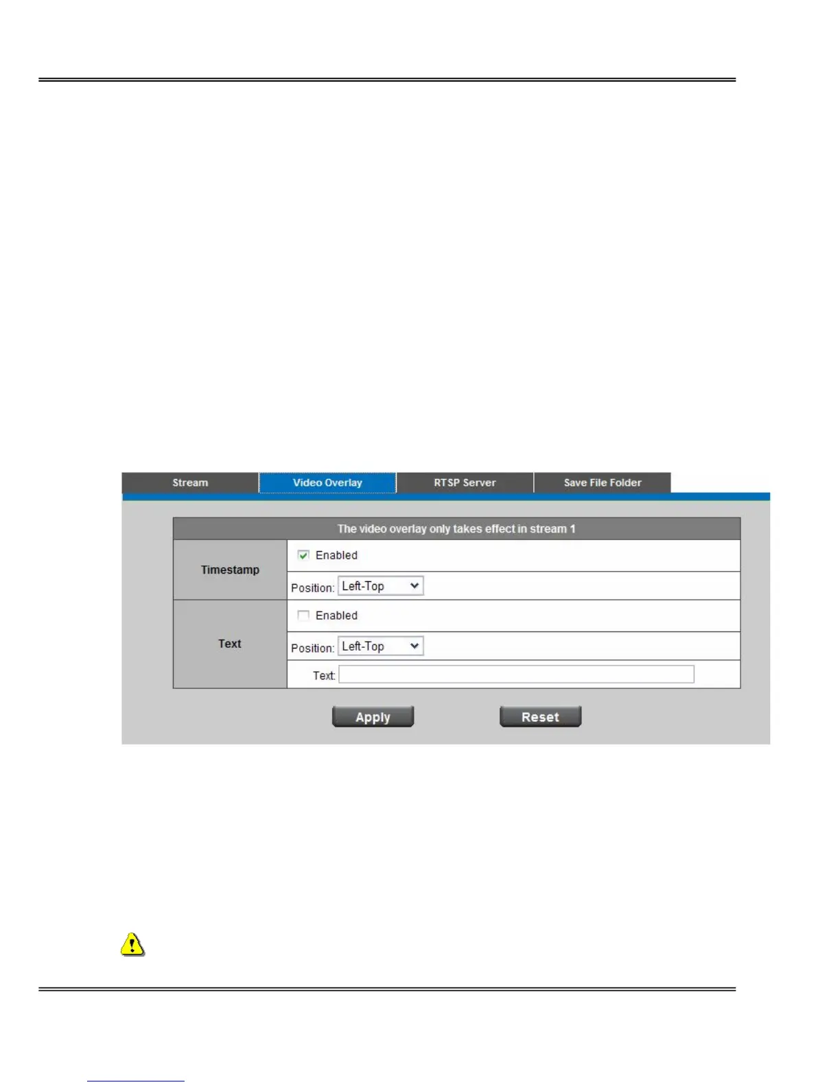 Video Overlay - Check to enable the timestamp function and select display position from the