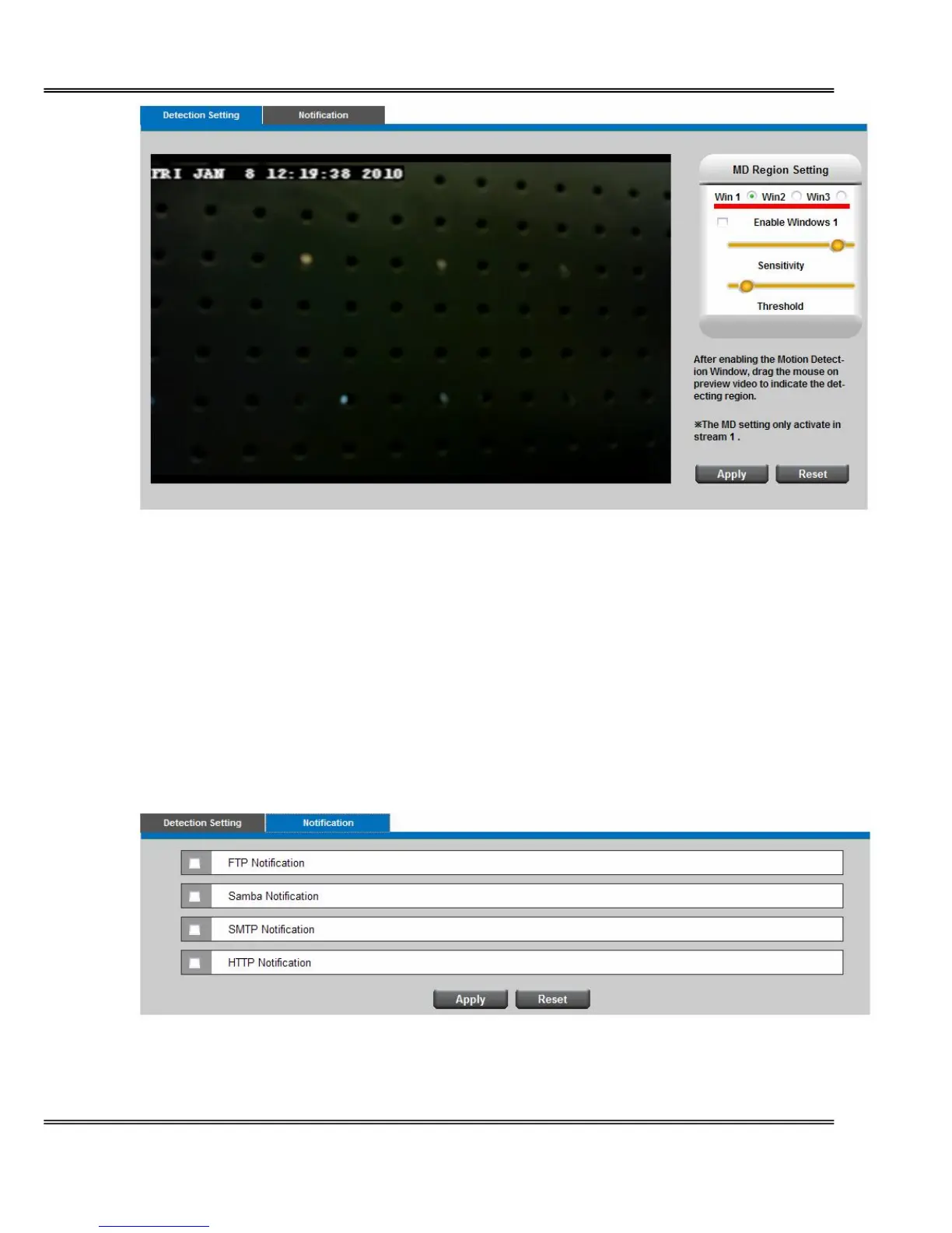 Detection Setting - Select and enable the motion detection windows function. Easier to