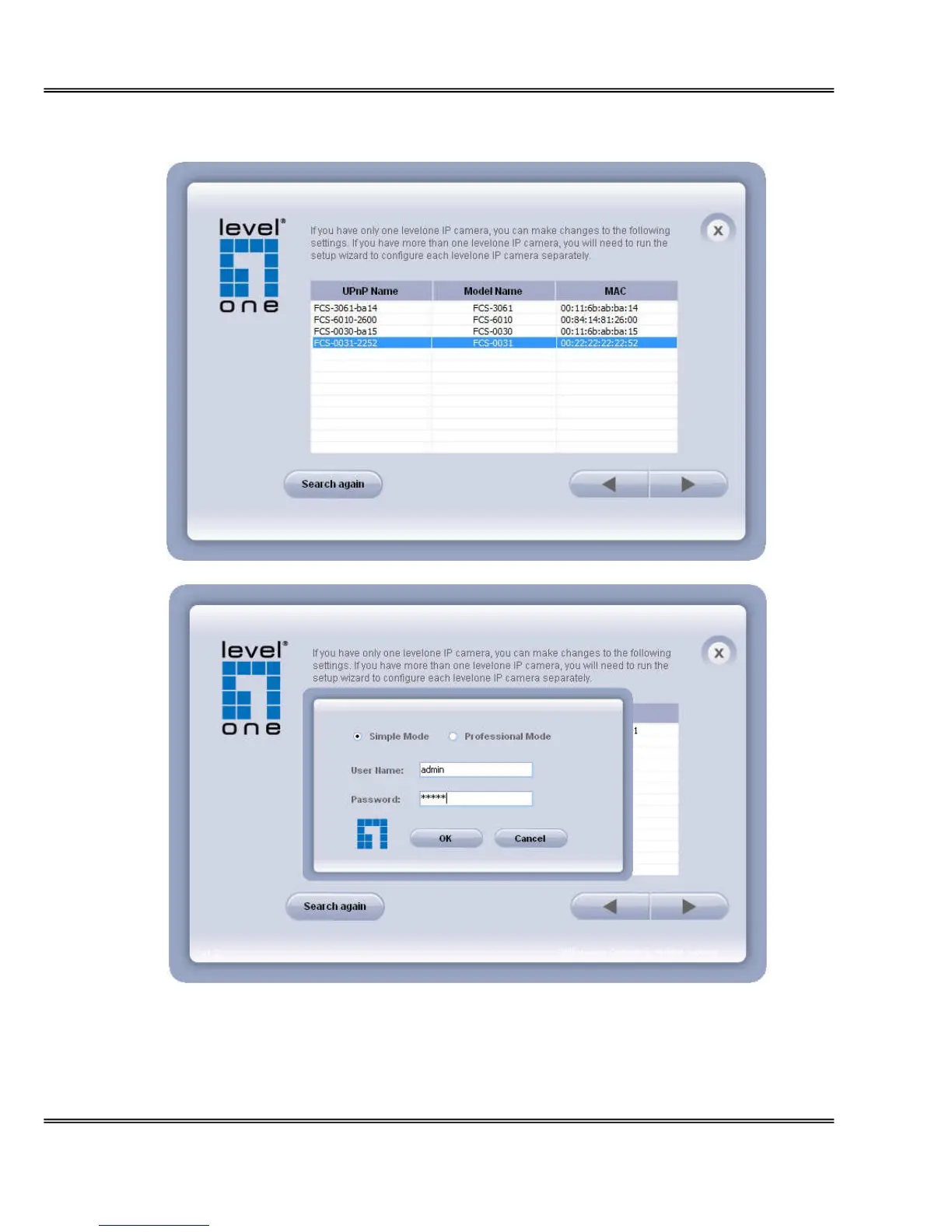 3. Select the Network Camera from the survey list and enter the user name and password.