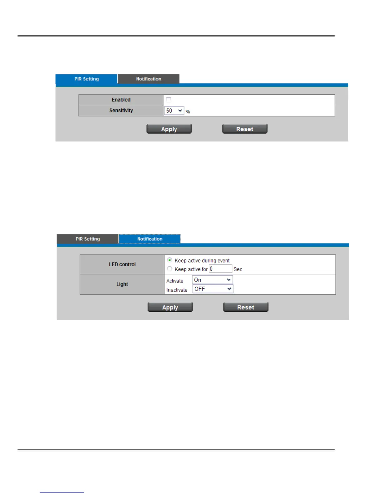 drop-down list to adjust the PIR Sensor’s sensitivity.