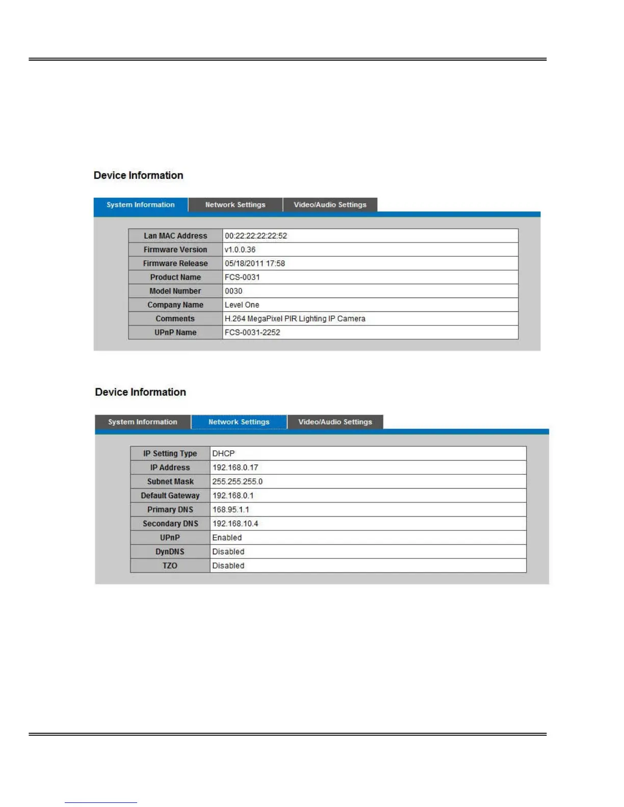 LevelOne FCS-0031 - Device Information