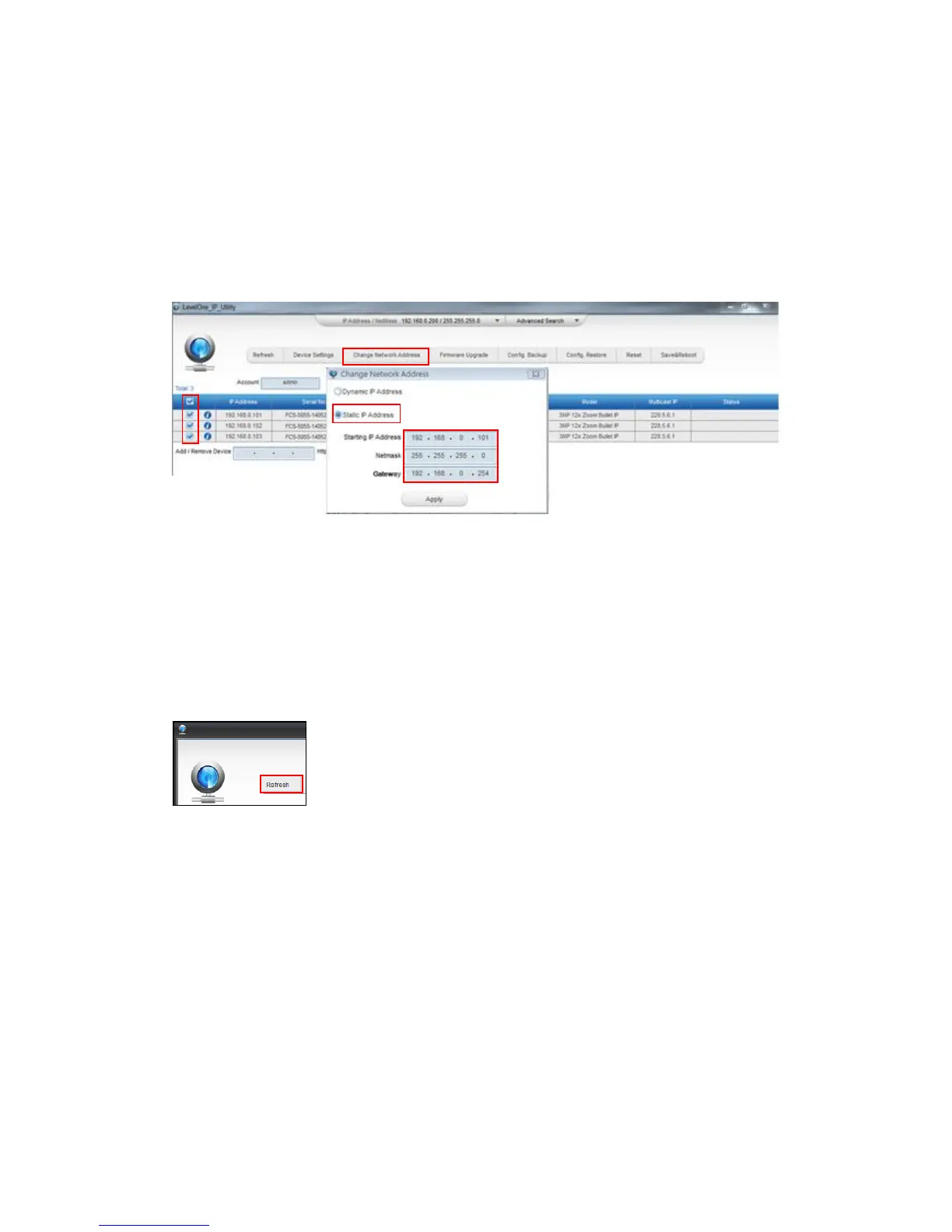 Later, by pressing the “Refresh” button of the IP Utility, you will be able to see the list of