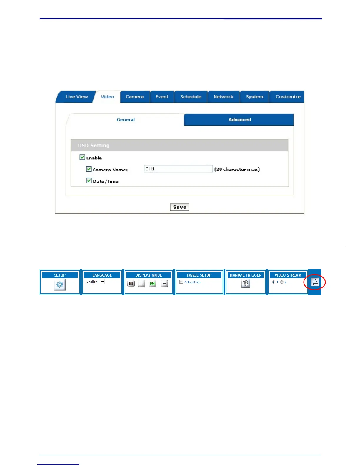 OSD Setting: Enable OSD to display camera name and date/time on the image. A line of text message