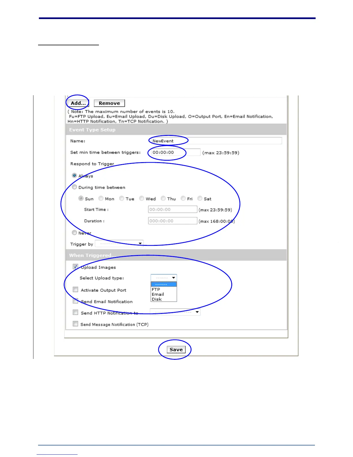 1. To add an event trigger, click on [Add] and setup panel will be expanded.