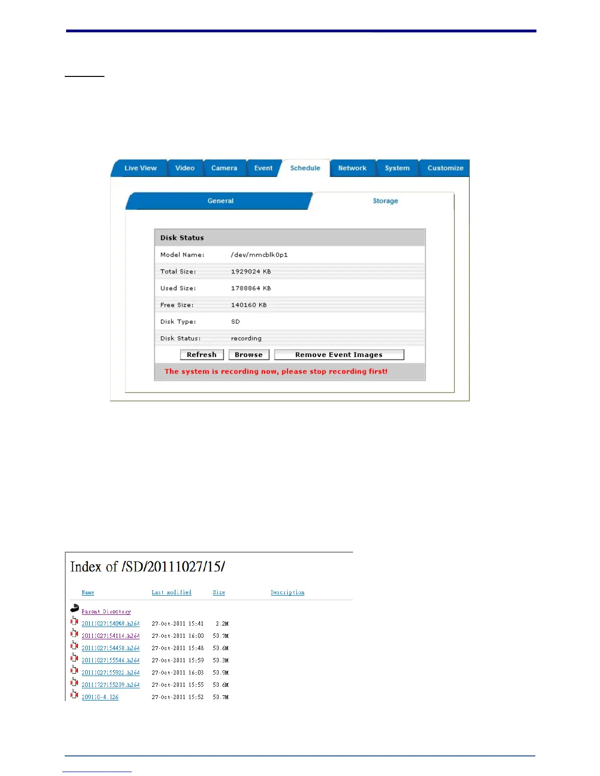 The “Browse” button allows viewing the list of recorded files. The web page will then be redirect to the